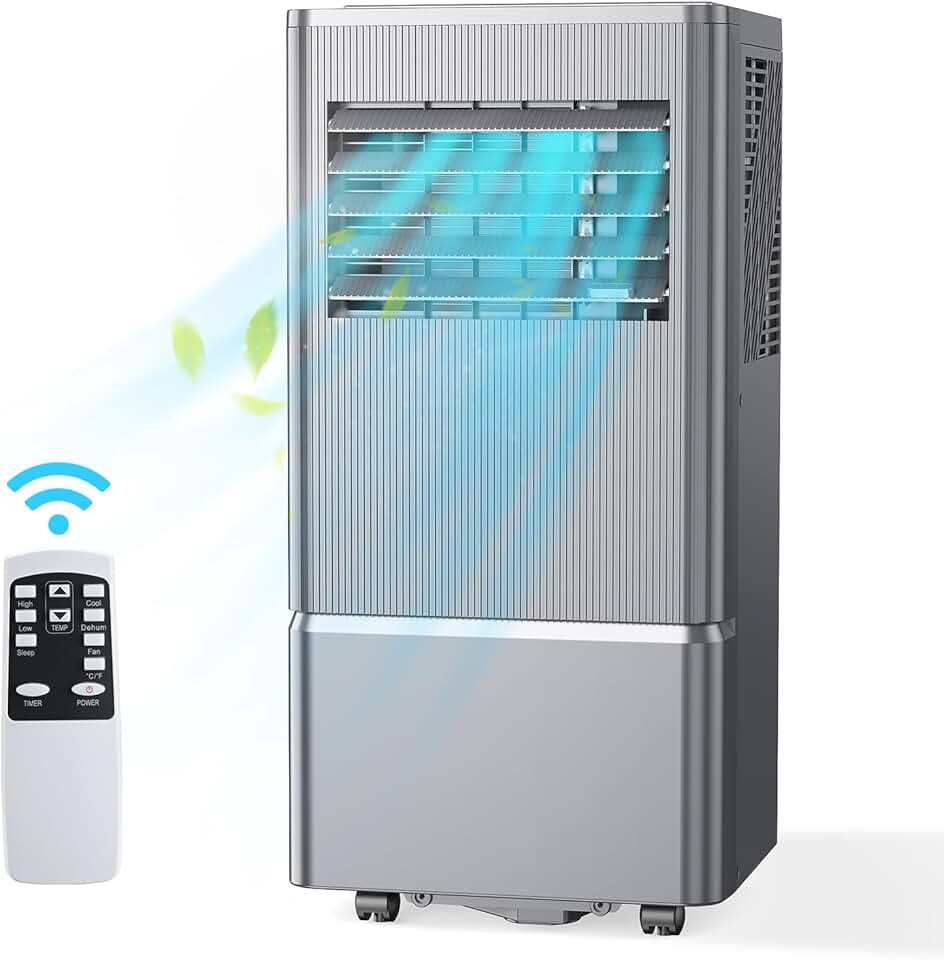 Air Choice Portable Air Conditioner, 10000 BTU Air Conditioner Portable for Room Up to 450 Sq.Ft, 24H Timer, 3-in-1 Quiet AC Unit as Dehumidifier Fan, Remote, Window Kit Included, Metallic Grey