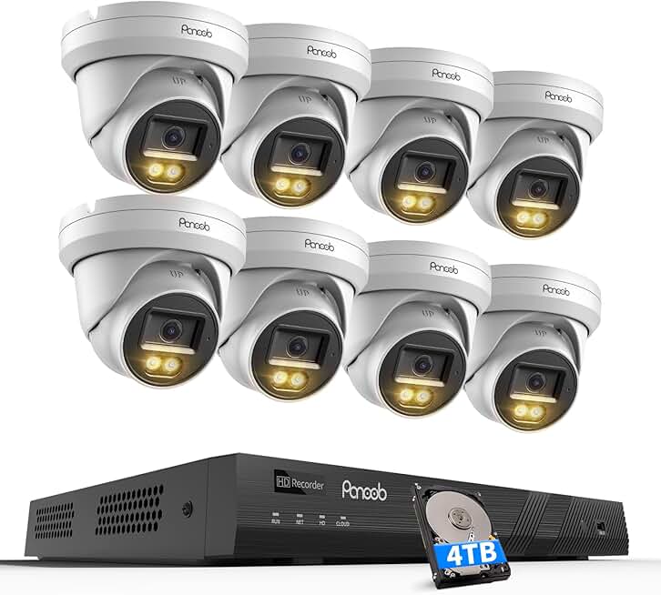 8 Security Camera System 5MP, 8X Wired IP Dome Turret PoE Camera Outdoor w/Mic, Smart Dual Light Color Night Vision, Remote Playback, AI Human Detection, 4K 16CH NVR 4TB HDD, PD93BA0816-5MDF
