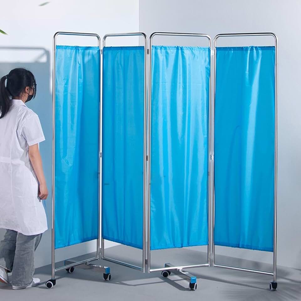 4 Panel Medical Privacy Screen Room Divider, Foldable Room Isolation Temporary Fence for Clinic/Ward/Examination Room, Space Saving