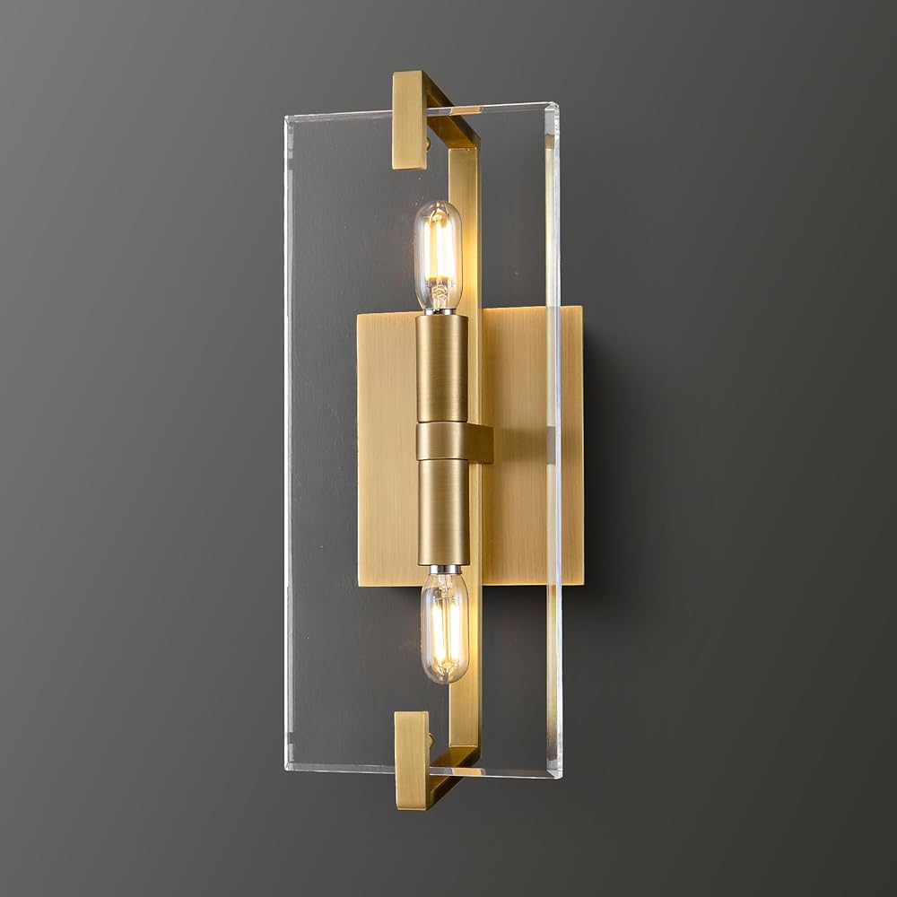 K9 Brass Crystal Wall Sconces, Modern Sconces Wall Lighting Brass Sconces Wall Light fixtures Indoor for Living Room Bedrooms Hallway Fireplace Bathroom Staircases E12 Bulbs(Included)