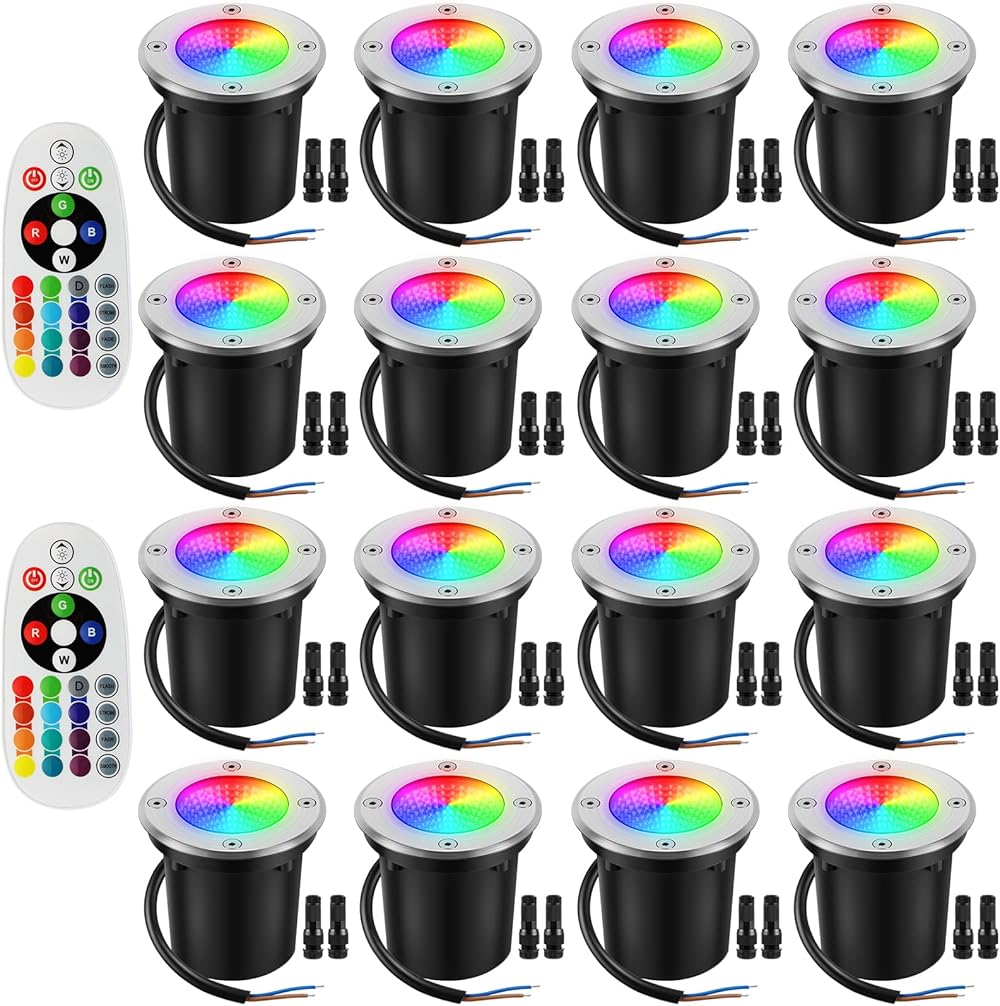 Low Voltage Landscape Lights 12W Color RGBW Warm White LED Well Landscape Lighting Color Changing IP67 Waterproof Outdoor 12V-24V for Pathway Garden Yard Fence Deck(16Pack with Connectors)
