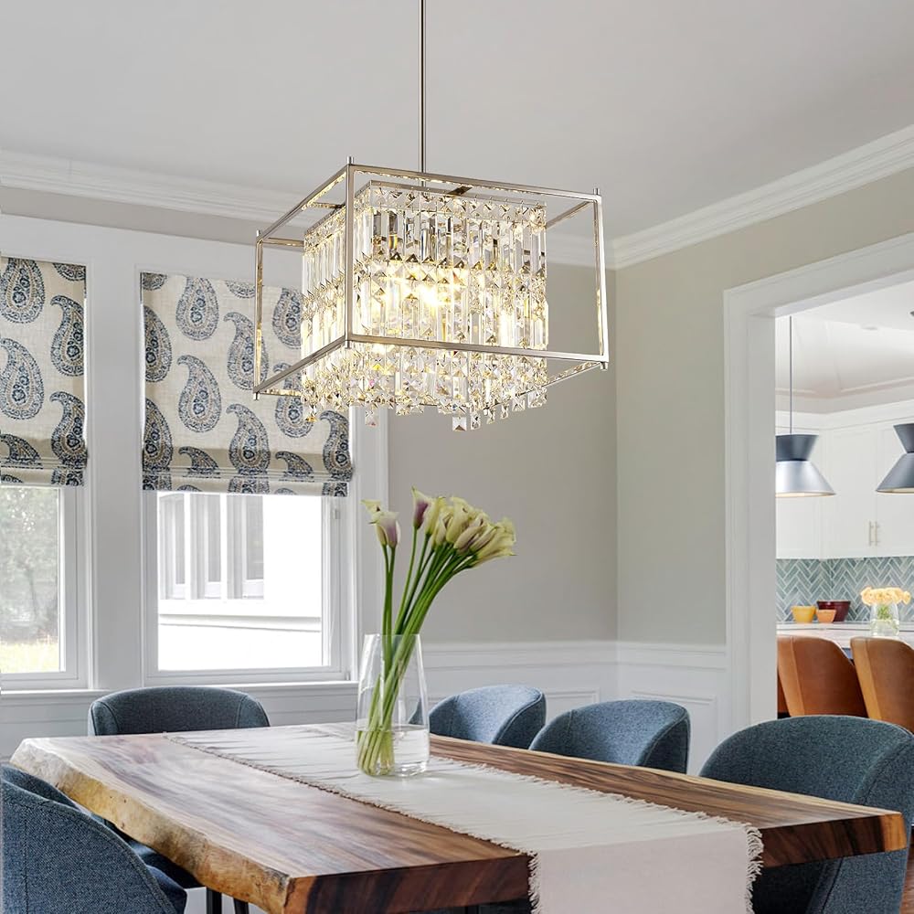Modern Crystal Pendant Light for Kitchen Island, K9 Crystal Hanging Pendant Lighting Fixture Farmhouse Chandelier Light for Living Room Hallway Foyer