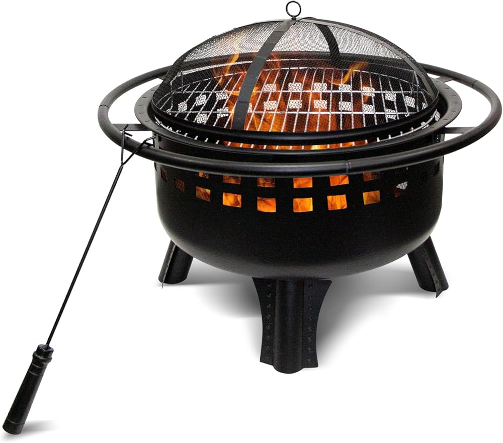 32 Inch Fire Pit with Grill,Outdoor Wood Burning with Fire Poker,for Patio,Backyard,Black