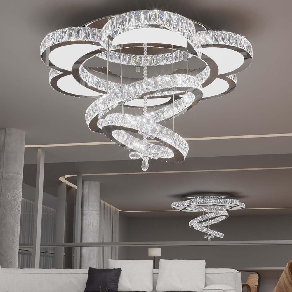 W32 Chandelier for Living Room LED Flush Mount Ceiling Light for Dining Room Fixture Silver Chandelier with Remote Control Dimmable 2700-6000K