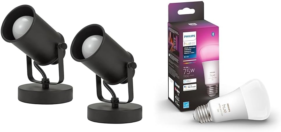 Modern Multipurpose Spotlight Desk or Wall Mount Accent Lamp, 6" & Philips Hue Smart 75W A19 LED Bulb - White and Color Ambiance Color-Changing Light - 1 Pack