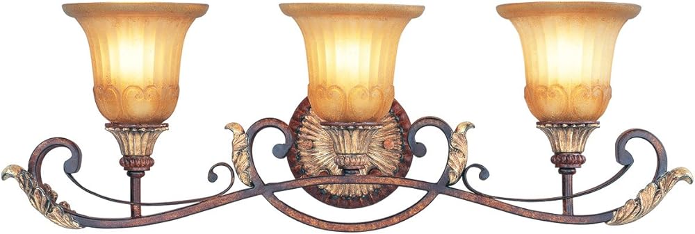 8553-63 Villa Verona 3 Light Verona Bronze Finish Vanity Bath with Aged Gold Leaf Accents and Rustic Art Glass