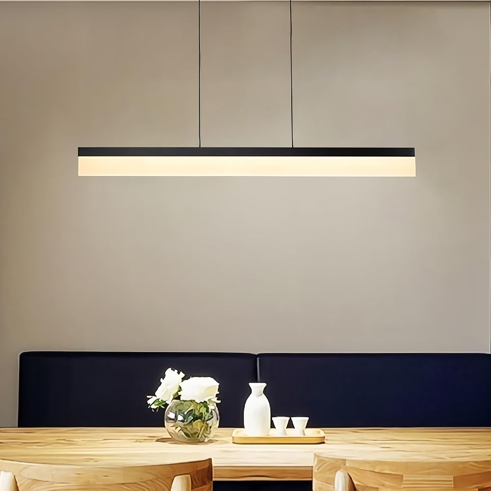 Tubicen 25W LED Linear Pendant Light, Dimmable Adjustable Kitchen Island Lights, Modern Black Linear Ceiling Hanging Light for Kitchen Dining Room Bar, 35.4" L