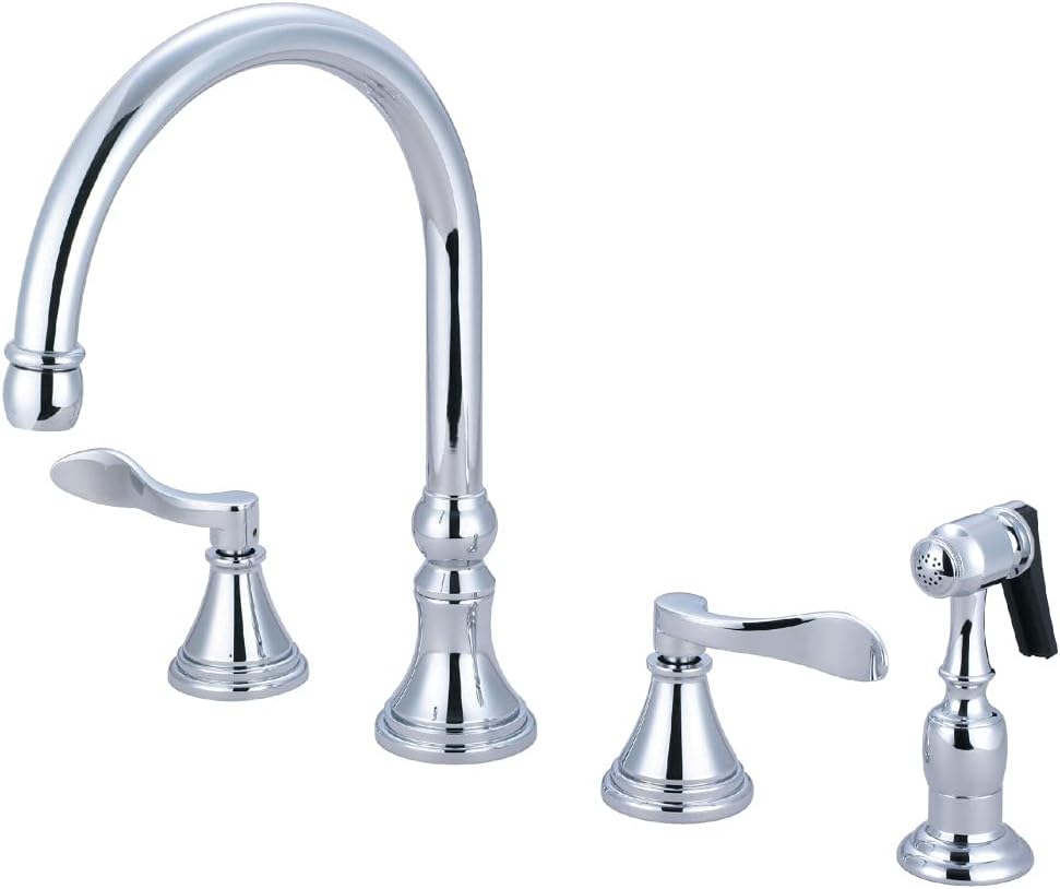 Kingston Brass KS2791DFLBS NuFrench Deck Mount Kitchen Faucet with Brass Sprayer, 8-Inch, Polished Chrome