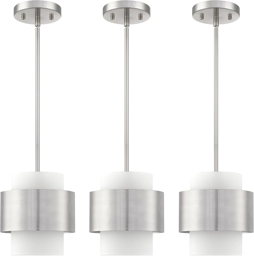 3 Pack 1 Light Hanging Indoor Kitchen Island Rod Pendant Light 5.5" Drum Frosted Glass Shade Pendant Ceiling Light Fixture,Brushed Nickel Finish Modern Farmhouse Dinning Over Sink