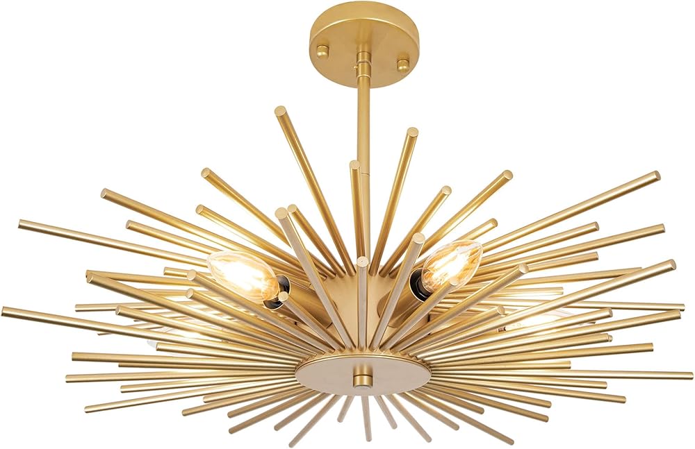 TOCHIC Semi Flush Mount Ceiling Light, 6 Lights Modern Gold Metal Light Fixture, Starburst Flush Mount Chandelier Ceiling Mount for Kitchen, Dining Room, Bedroom, Living Room, Foyer, Hallway