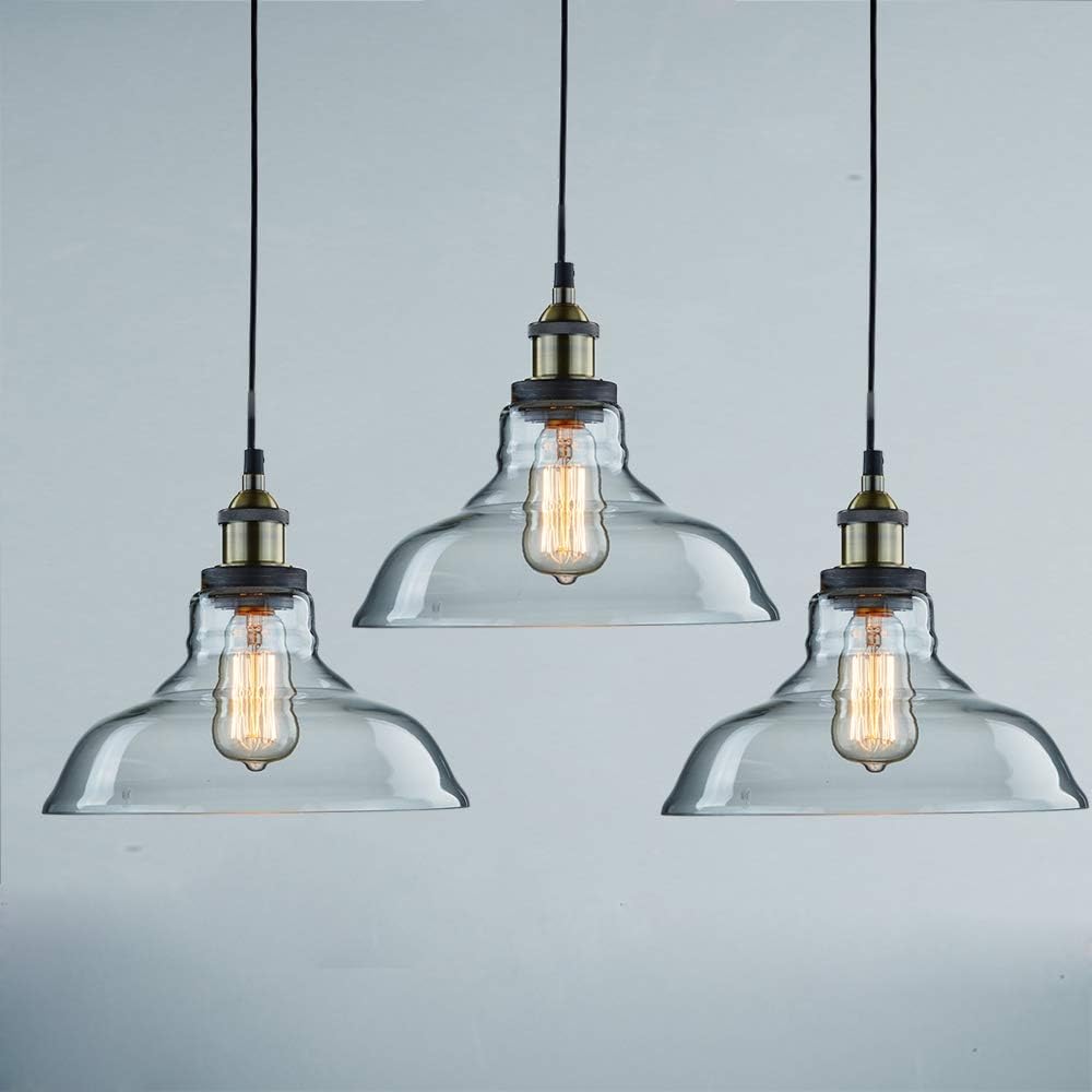 CLAXY Classic Pendant Light Fixture Glass Pendant Light for Kitchen Dining Porch Dimmable Adjustable Height-3 Pack