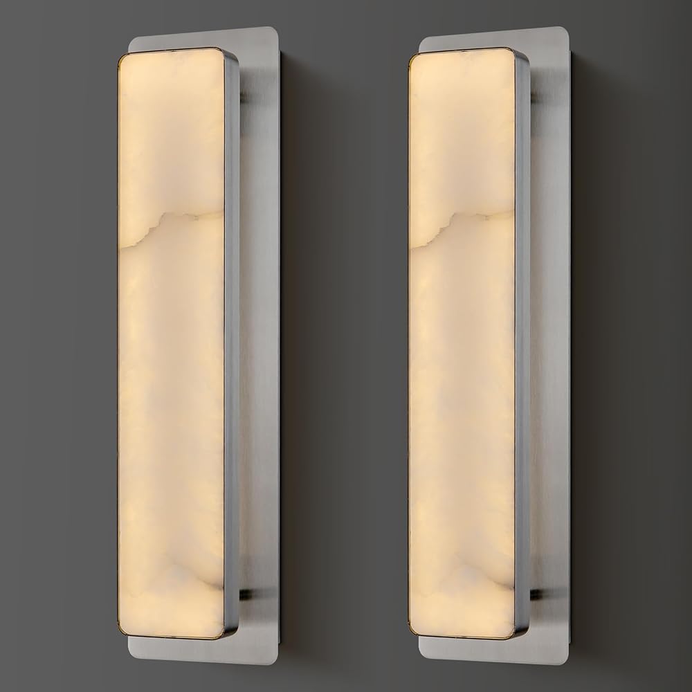 19.7inch Alabaster Wall Sconces Brushed Nickel Wall Sconce LED Wall Lights for Bedroom Indoor Vanity Lighting Fixtures Bedside Wall Lamps for Living Room, Hallway