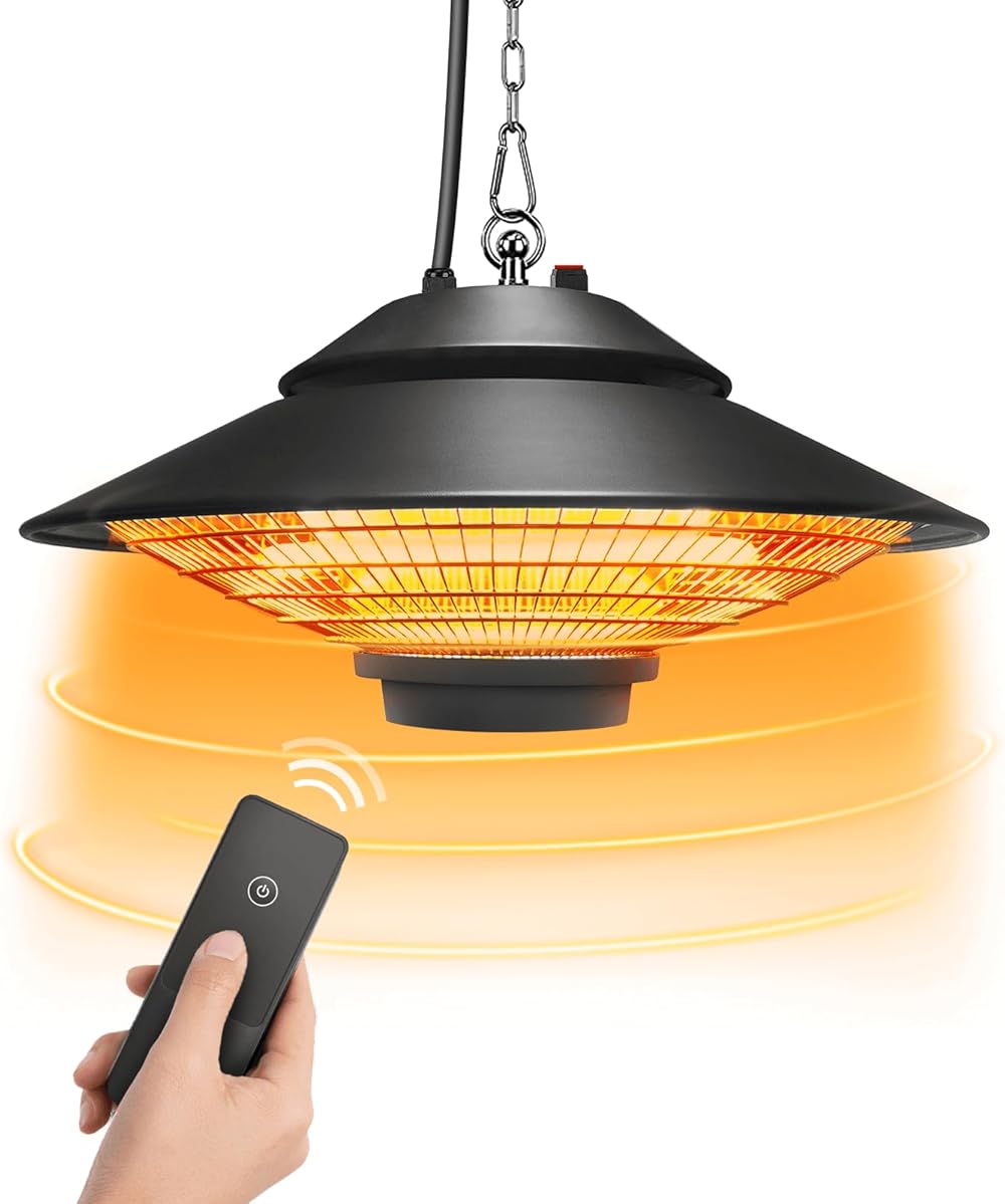Outdoor Heater - Hanging Patio Heater - Outdoor heaters for patios - 1500W Electric Heater with Remote, IP65 Waterproof Infrared heater for Indoor and Outdoor Use (Black GS)