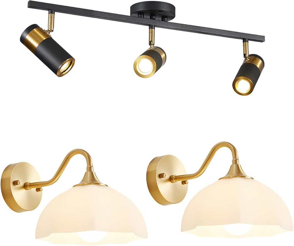 Modern 3 Light Black Track Lighting Kit, 1-Light Modern Wall Lighting Fixture, MCL05-3 BK&MWL02-1A