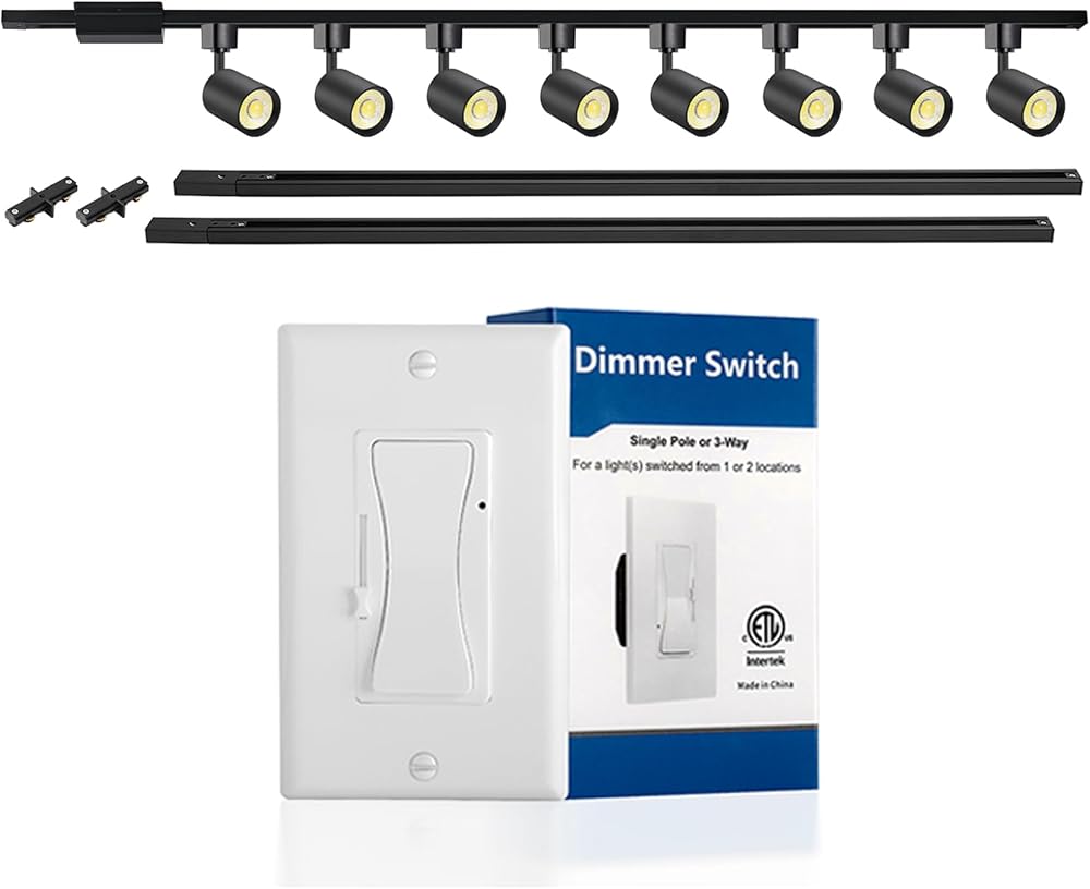 VANoopee Dimmer Included 8-Light LED Track Lighting Kit with 6.6FT H Type Track Lighting Rail, with H Track Floating Canopy Connector, Black