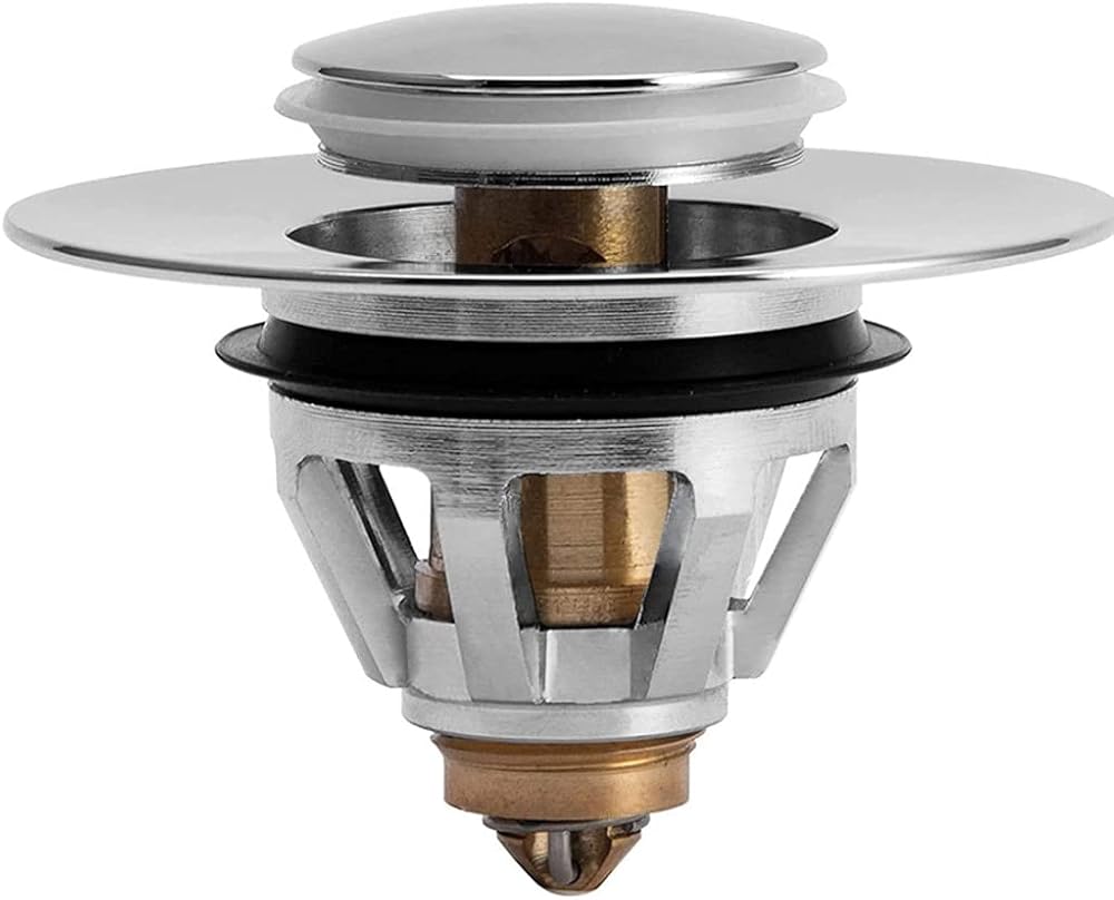Wash Basin Drain Stainless Steel Bounce Core Push-Type Drain Filter Wash Basin Push-Type Hair Catcher Sink Bathtub Plug Trap (Color : Black)