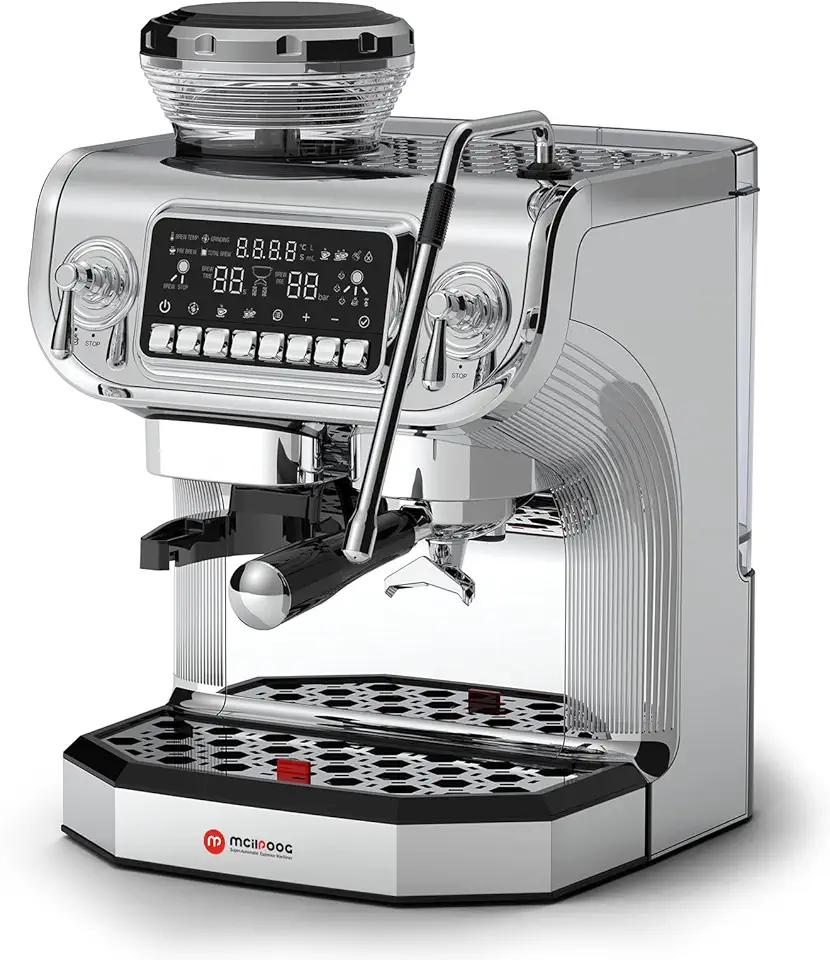 Mcilpoog TC530 Espresso Machine with Milk Frother,Semi Automatic Coffee Machine with Grinder,Easy To Use Espresso Coffee Maker with 5.5 inch Large Screen,15 Bar Pressure Pump,PID Temperature Control.