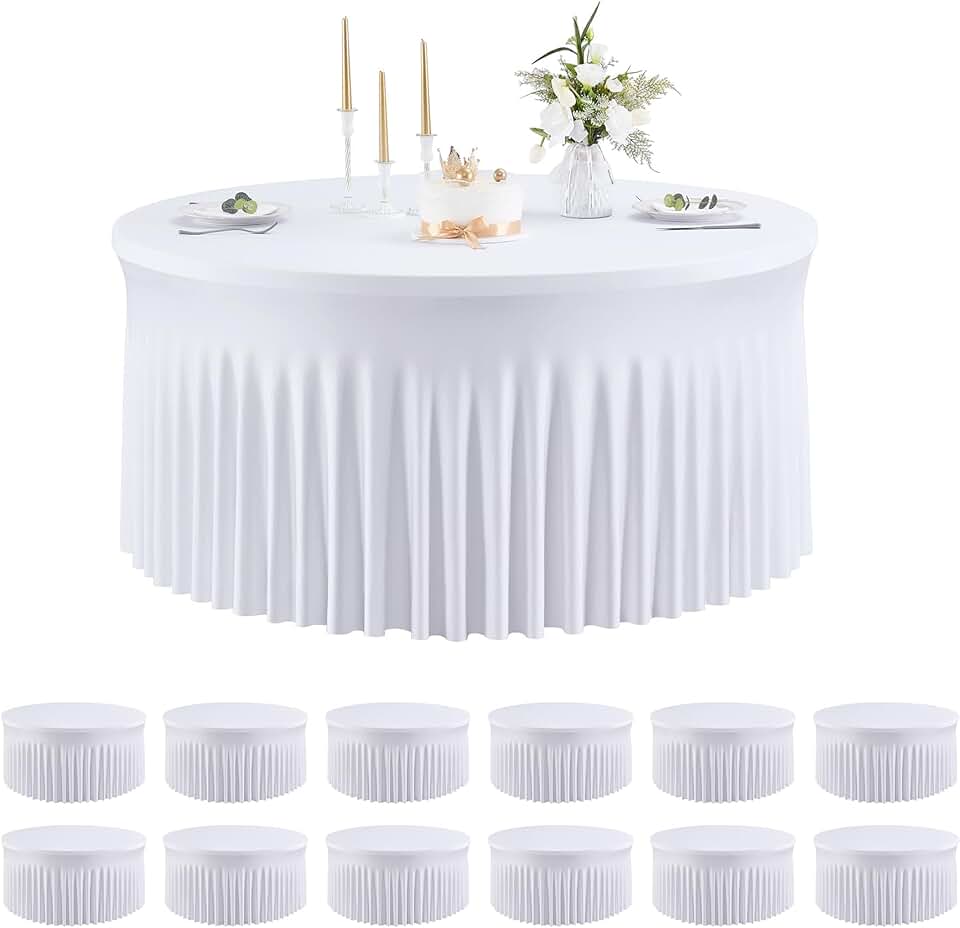 gogoparti 12 Pack White 60 inch Round Spandex Tablecloth for 5FOOT Round Table, 120inch Stretchy Tablecloth Fitted 5ft Round Table, Wrinkle Free Table Cloths for Wedding Party Banquet