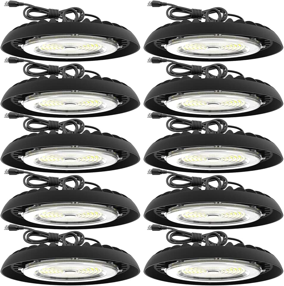 Sunco 10 Pack UFO LED High Bay Light, Plug & Play Lighting for Warehouse, 5000K Daylight, 200W, Power Cord Included, 28000 LM, 120VAC, IP65 Waterproof Shatterproof Fixture - UL Listed