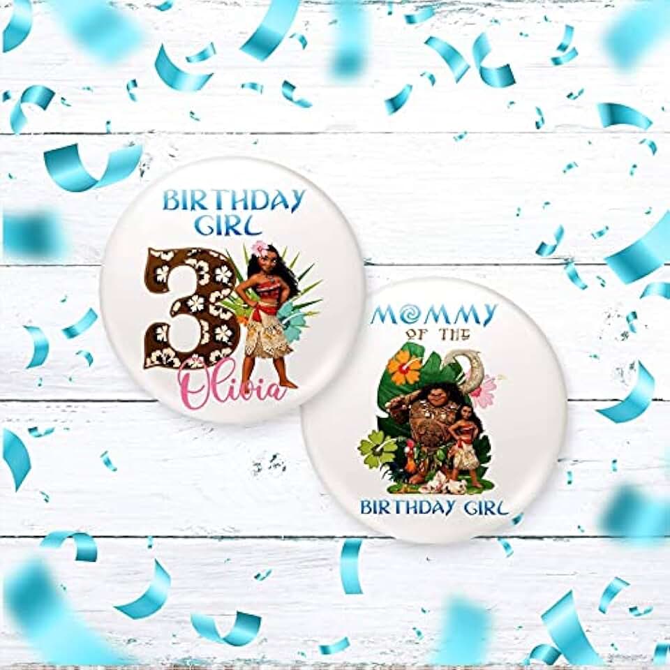 Baby Moana Character Theme Custom Birthday PinBack Badge Stickers - Personalized Birthday Party Décor - Party Favor Character Pins for Family & Friend (50 Buttons)