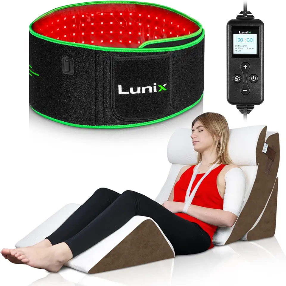 Lunix LX16 Red Light Therapy Belt - Near Infrared and Red Light Therapy to Improve Circulation and Relax Muscles - Green + LX5 4pcs Orthopedic Wedge Pillow Set, Memory Foam Sitting Pillow - Brown