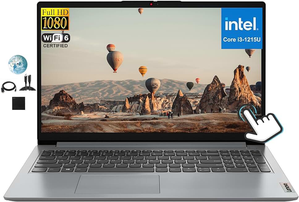 Lenovo 15.6" FHD Ideapad Touchscreen Laptop, Intel Core i3-1215U 6-Core, 24GB RAM, 1TB SSD, Wi-Fi6, Webcam, Bluetooth, SD Card Reader, Windows 11, GM Accessories, Gray