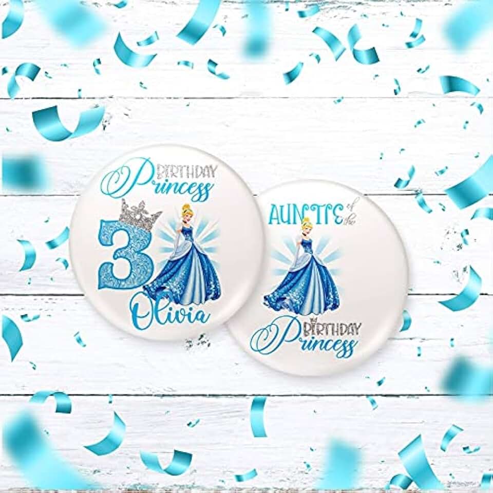 Cinderella Character Inspired Birthday Pinback Badge - Personalized Birthday Party Décor - Custom Party Favor Pinback Buttons 2.25 Inch (50 Buttons)