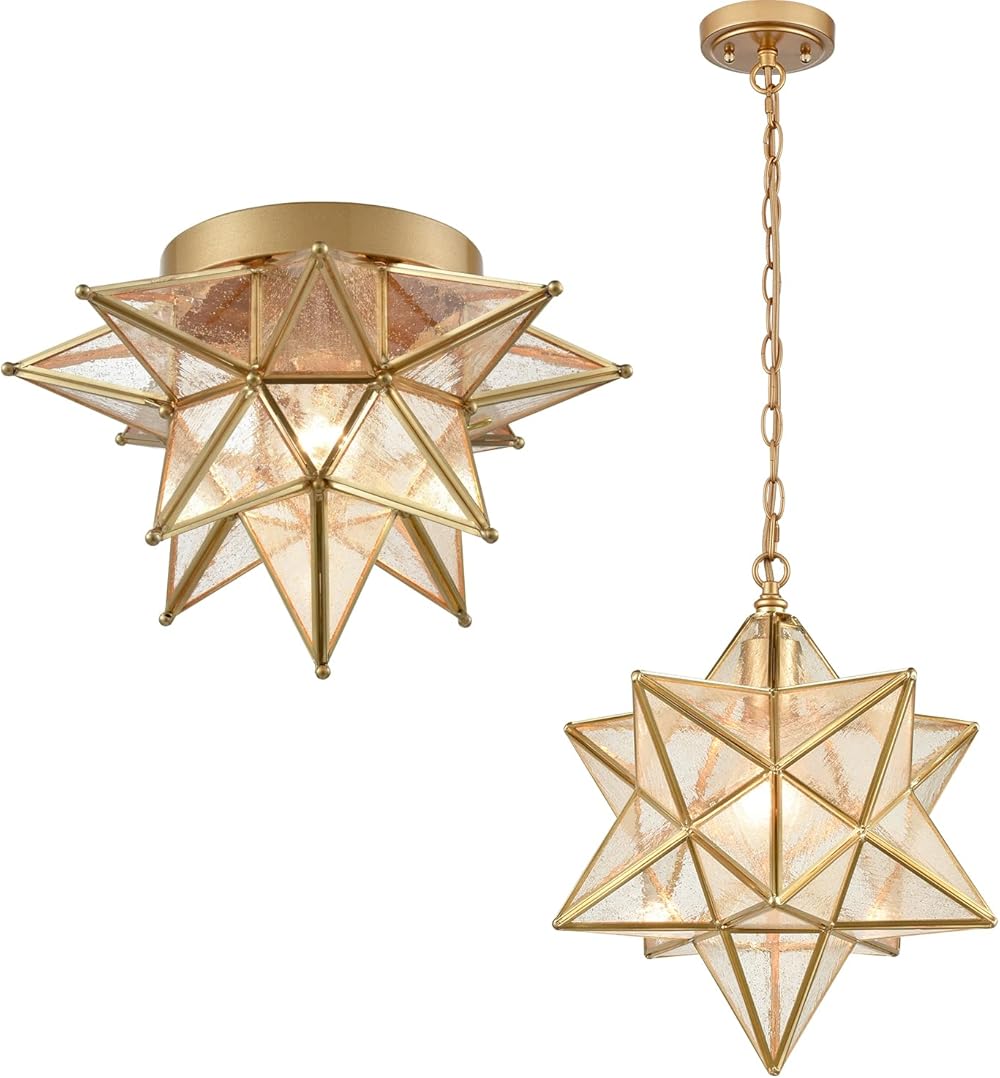 Gold Moravian Star Flush Mount Ceiling Light 12.7" & 13.5" Moravian Star Pendant Light Bundle