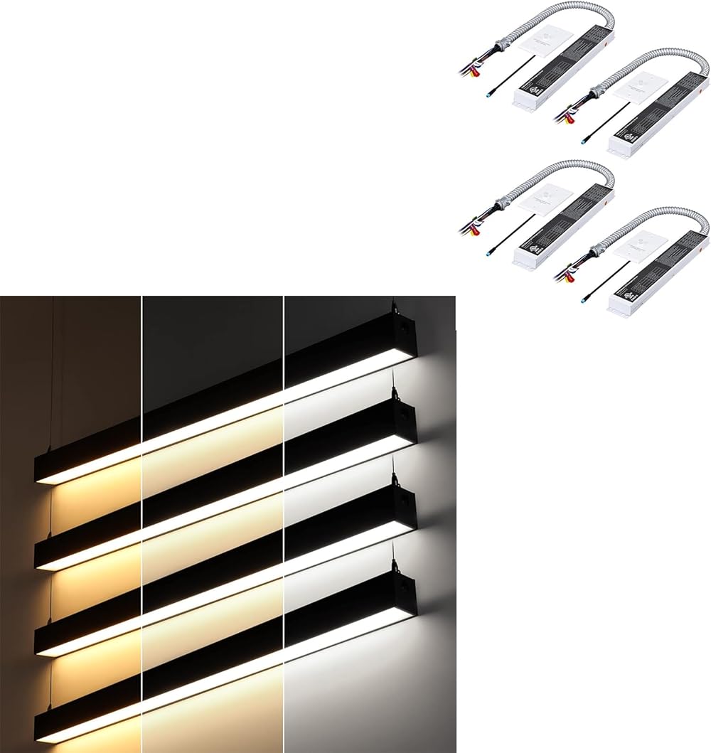 LEONLITE Linear Light Bundle Emergency Driver, 4-Pack 3CCT 4FT 40W Linkable LED Linear Light, 0-10V Dimmable, 100-277V, ETL Listed & 4-Pack 15W LED Emergency Driver, 100-347VAC, 170VDC Output, UL