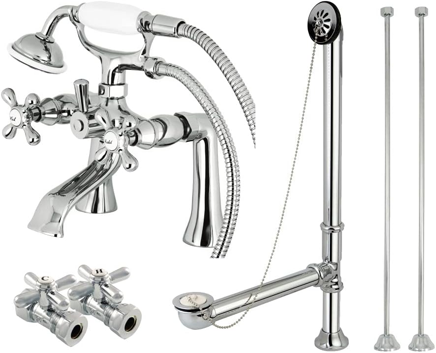 Kingston Brass CCK268C Vintage Deck Mount Clawfoot Tub Faucet Package, Polished Chrome 7 Inch