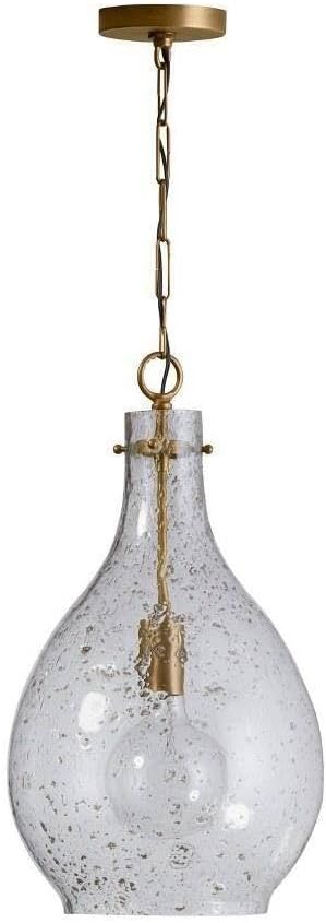 333813PA-472 Rabun Stone Seeded Glass Teardrop Pendant, 1-Light 100 Watt, 22" H x 12" W, Patinaed Brass